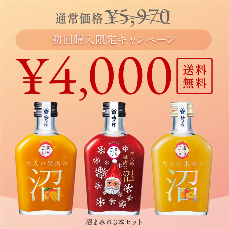 初回限定!1,970円OFF&送料無料! 購入時にこちらのクーポンコード【NMMR】をご利用ください。 ※クーポンをご利用にならない場合は、割引されませんのでご注意ください。 大人気!果肉をそのまま食べるようにたのしめるリキュール、大人の果肉の沼「いちご」に今年も限定デザインが登場です♪ いちごの沼、ももの沼、マンゴーの沼、すべての沼にまみれてみたいあなたに。 1度はまったらクセになる、濃厚果肉の沼3本セット。 香料・着色料・安定剤不使用。 食べ方は自由自在。 ●大人の果肉の沼「いちご」 厳選された2品種のいちご果肉をそのまま食べるようにたのしめる贅沢なリキュール。 上質ないちごの甘味・酸味・香りを自然な風味で味わえるよう、ていねいに加工したピューレを使用しました。 とろけるように柔らかい果肉のごろっと感と、本物果実だからこそできる贅沢なとろっと感。 果実と日本酒が織りなす、大人の贅沢な「沼」体験をぜひお試しください。 ●大人の果肉の沼「マンゴー」 3品種の完熟マンゴーをベストブレンド!マンゴーをそのまま食べるようにたのしめる贅沢なリキュール。 マンゴー本来のとろっと感や甘く濃厚な味わいをたのしめるように、1本に1.2個分のマンゴーを贅沢に使用しました。 隠し味に、パッションフルーツとレモンを加えることで、さわやかな酸味と華やかさをプラス。 食感の違いをたのしめるように果肉のカットサイズにもこだわりました。 ●大人の果肉の沼「もも」 ギリシャ産黄桃と和歌山県産白桃(あら川の桃)とすももをそのまま食べるようにたのしめる贅沢なリキュール。 ももの繊維を感じるテクスチャーとジューシーでしっかりとした肉質の黄桃果肉のダイスカット&すりおろしを入れ、口当たりの立体感を演出。 さらに、白桃ピューレでなめらかさを出し、果肉感をまとまりとして感じられるように。 果肉たっぷりの濃厚で、丸みのある柔らかな味わいが特徴です。