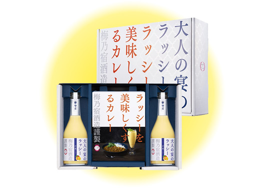 フルーティな甘み、ヨーグルトの酸味が絶妙に調和した、カレーを食べるとつい手が伸びてしまう日本酒仕込みのラッシーのお酒と 日本酒仕込みのあらごし梅酒を隠し味に入れた、ラッシーのお酒に抜群に合うキーマカレーです。 (大人の宴のラッシー「芒果」 300mL×2本、ラッシーを美味しくするカレー 200g×2箱)